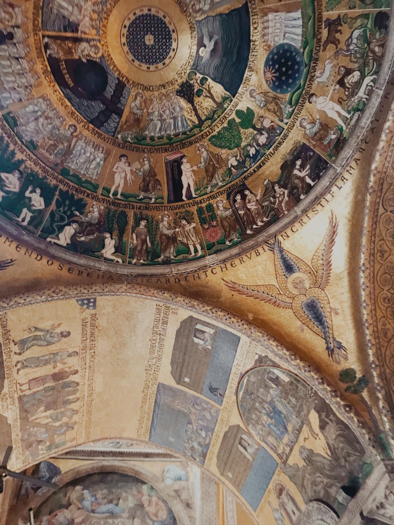 St. Mark’s Square is surrounded by jewelry shops, snooty art dealers and over-priced coffee and pastries (all of which are inaccessible to me until I get married…I’M KIDDING). However, the Basilica itself is a must-do. Like I previously mentioned, the crowds were surprisingly not overwhelming so I didn’t have to queue to enter! The benefits of traveling during off seasons are insane. The building is massive so I wasn’t able to take a good exterior shot, but look at this beautiful piece right before the entrance.